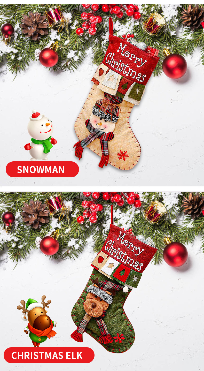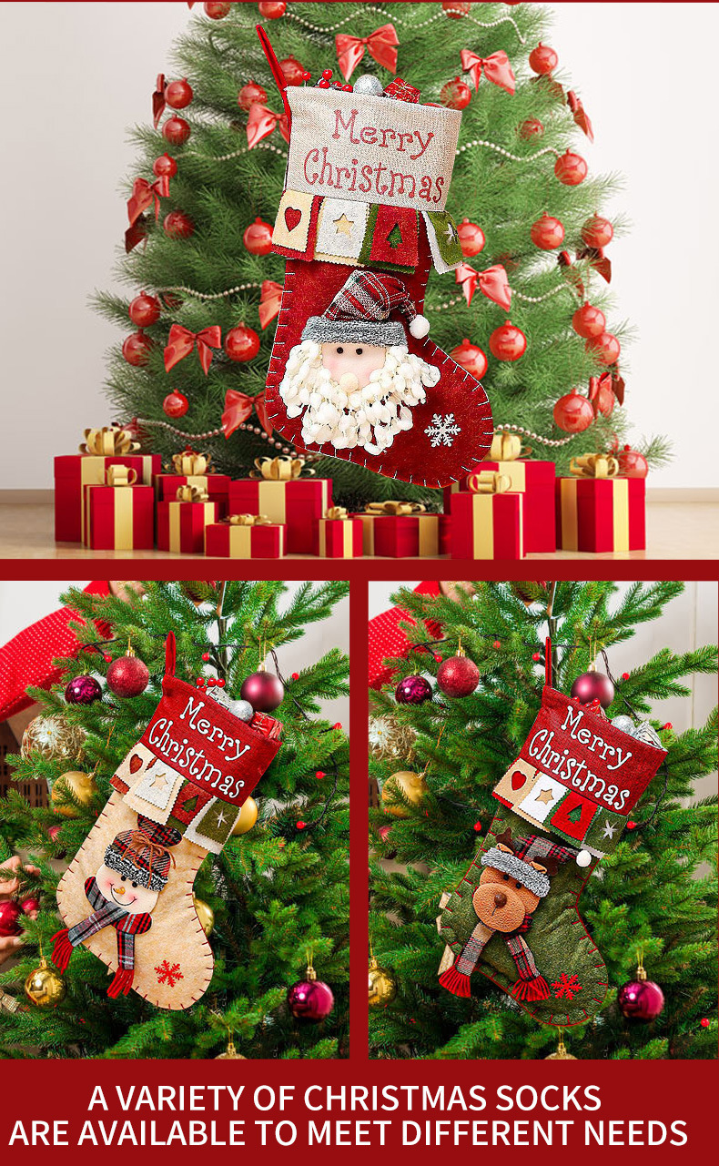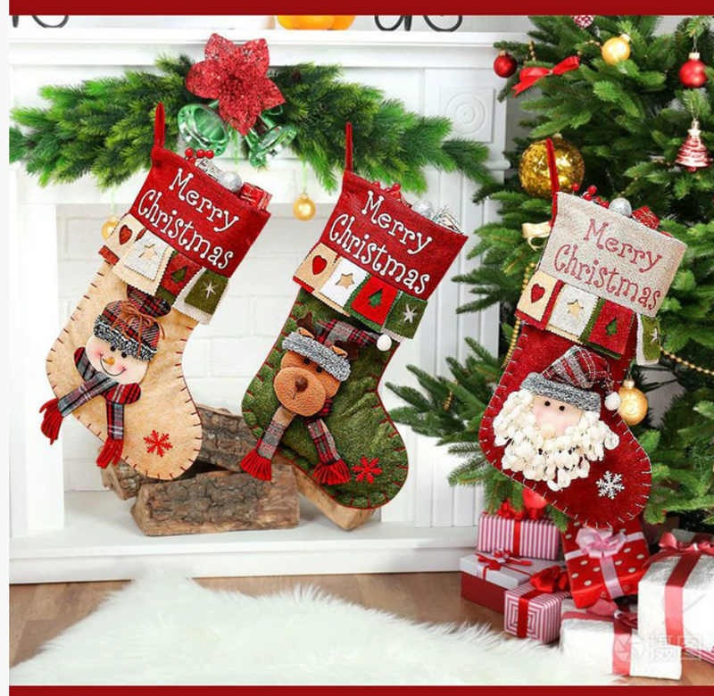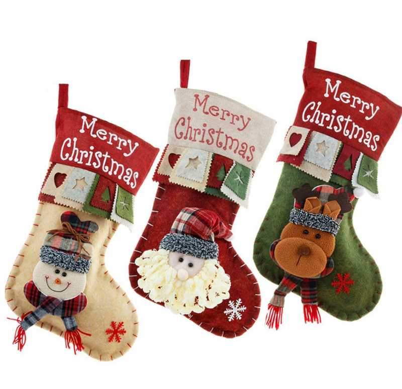 3 pieces Handmade Christmas Stocking Gift Bag
