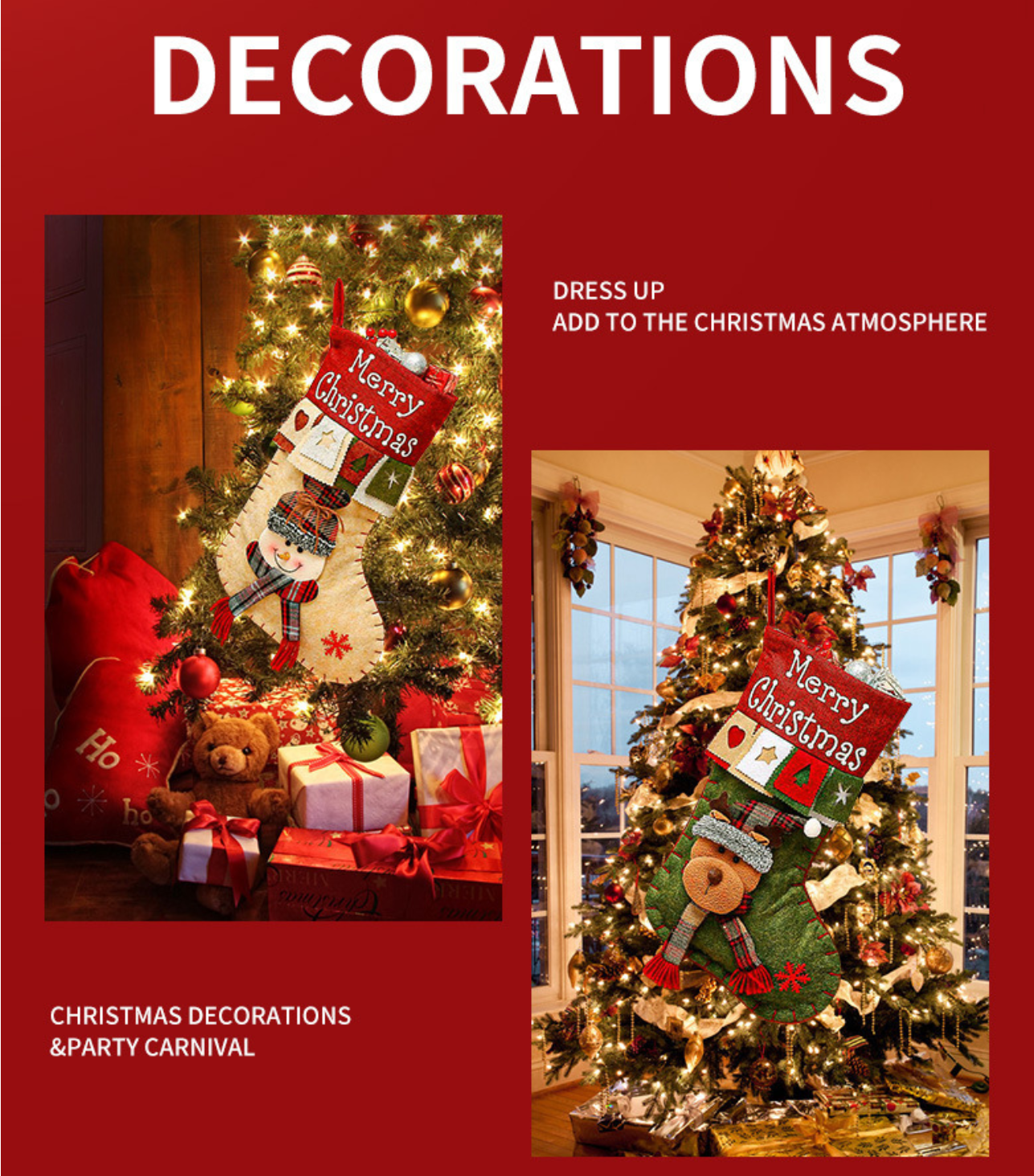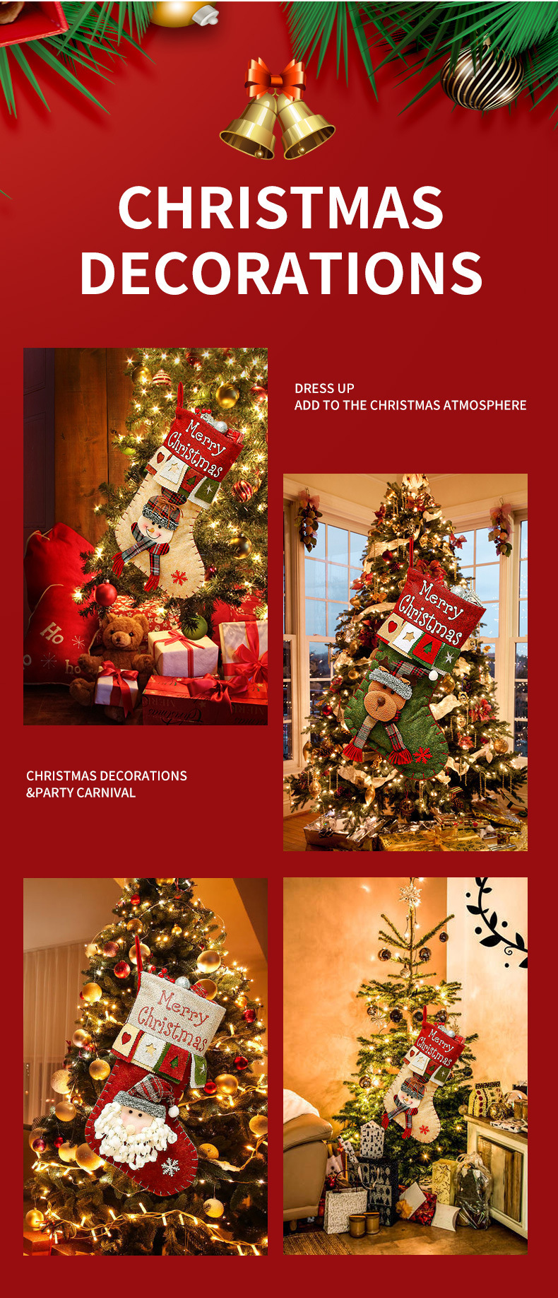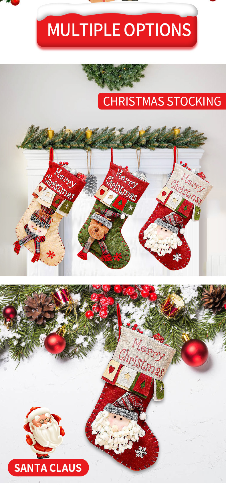 3 pieces Handmade Christmas Stocking Gift Bag