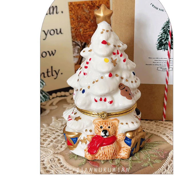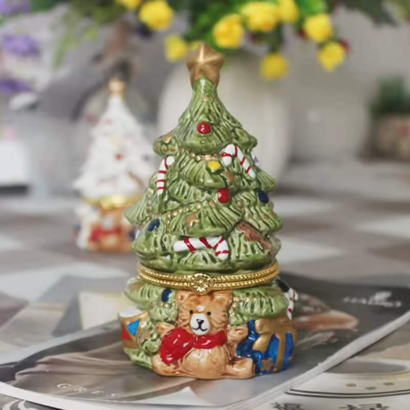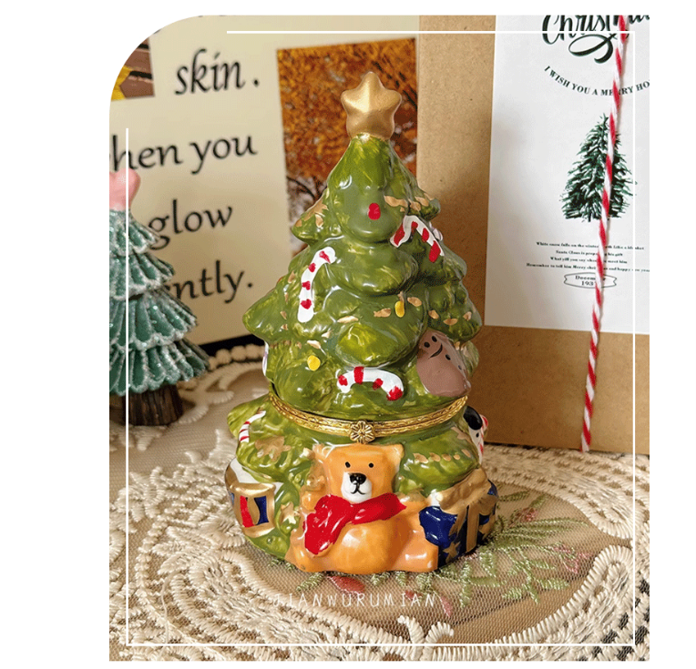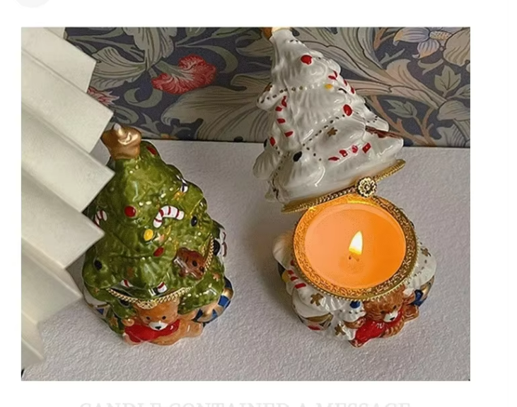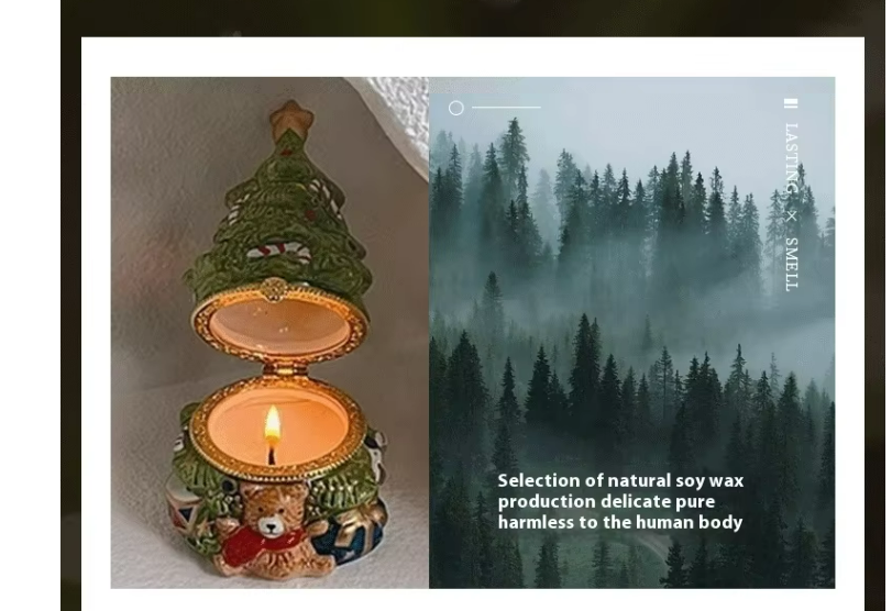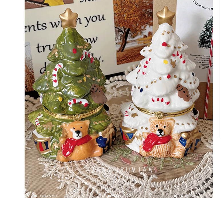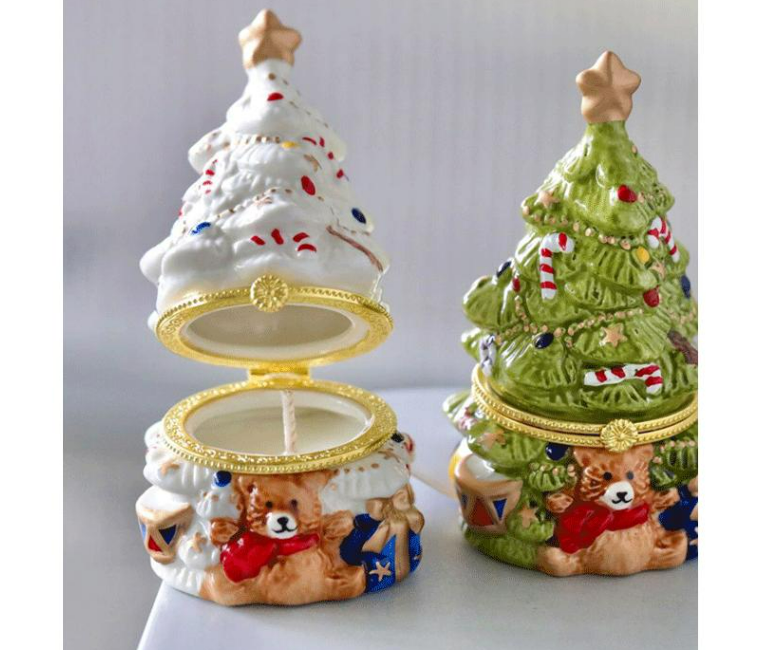 Cute Christmas Tree Scented Candle in Vintage Ceramic Jar, Long-Lasting Fragrance, Indoor Christmas Decor