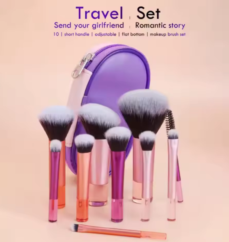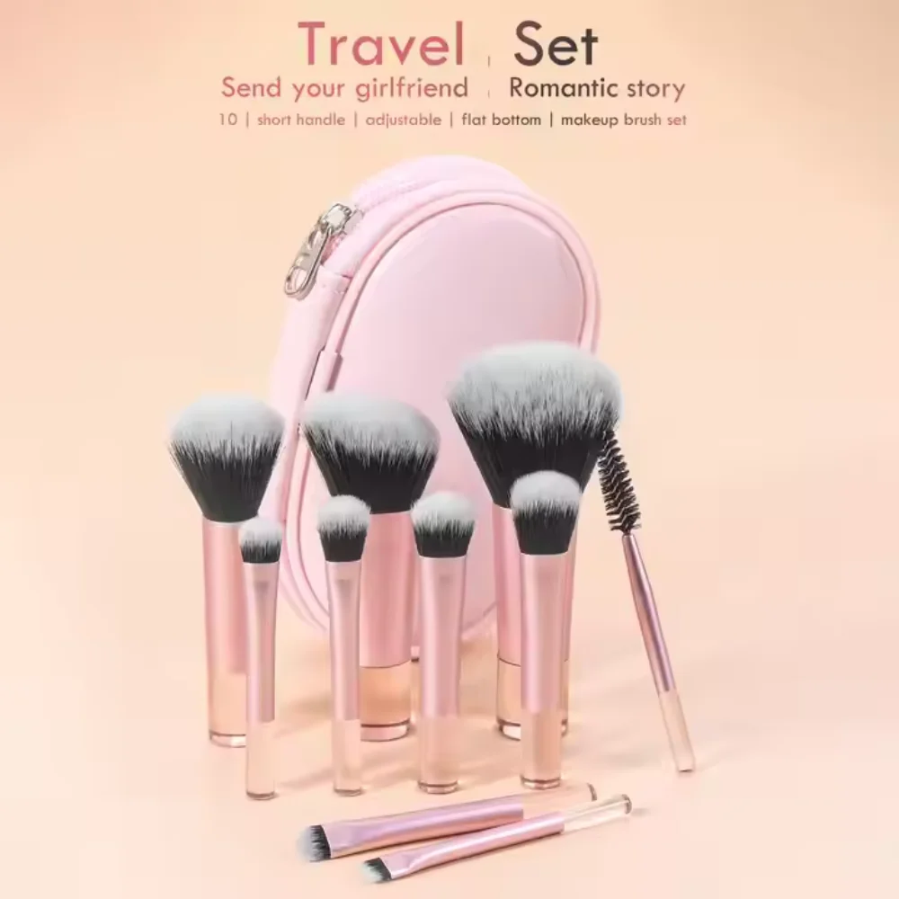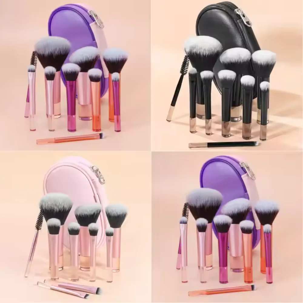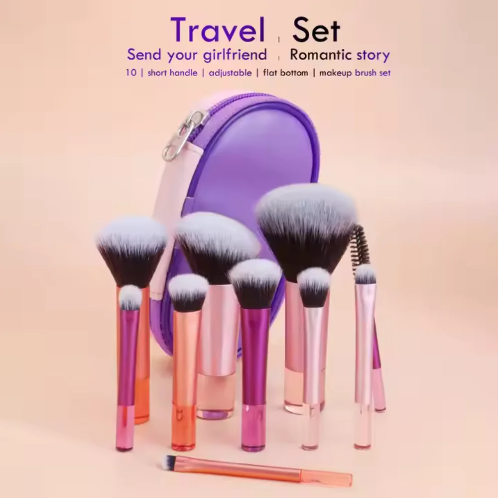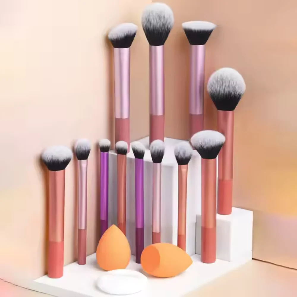 12pcs Multi-Functional Makeup Brush Set Including Powder Brush, Blush Brush, Foundation Brush, Eyeshadow Brush, Blending Brush, Contour Brush, Along With An Oblique Cut Makeup Sponge, Rounded Makeup Sponge, And White Powder Puff,Summer